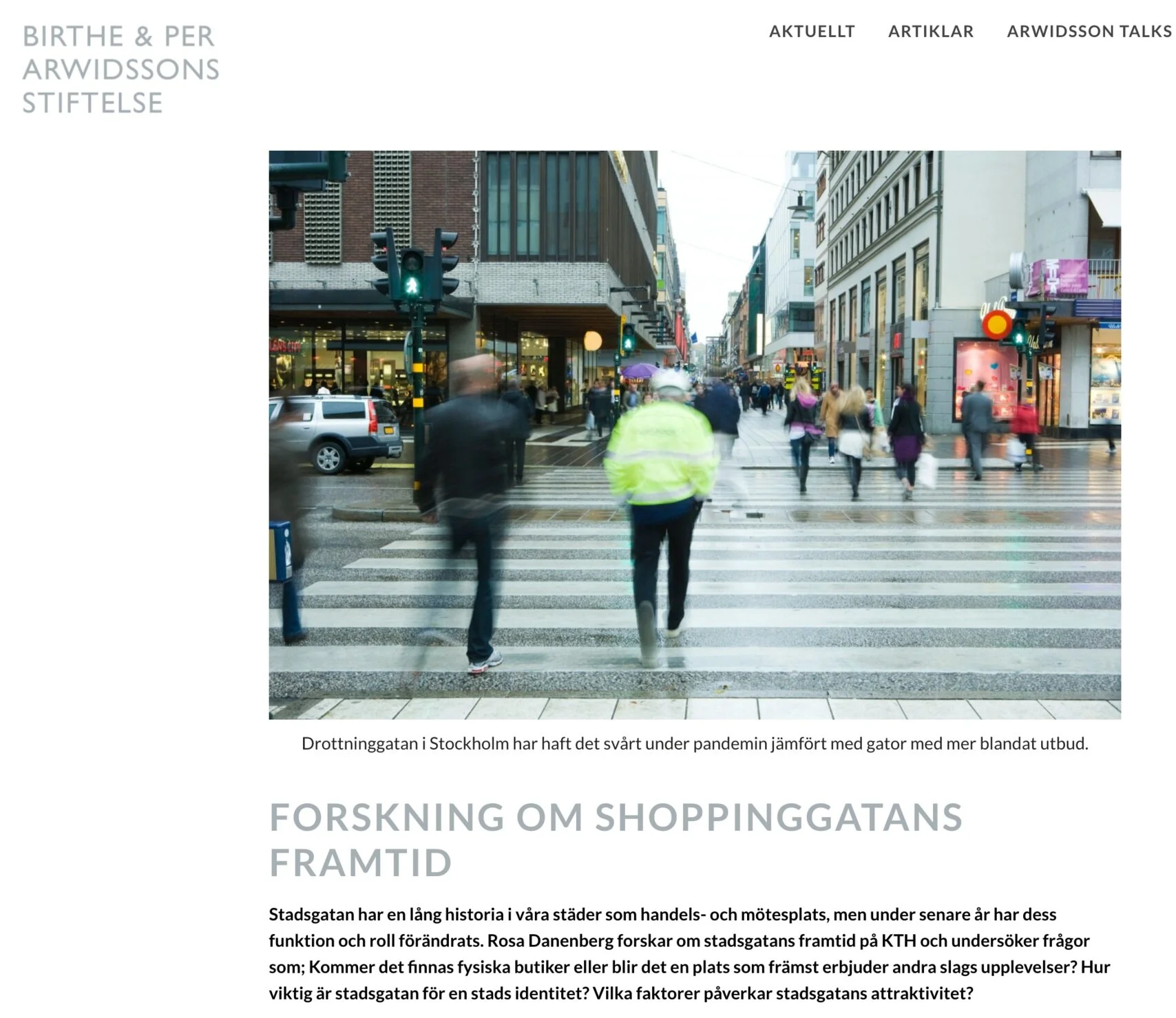 Arwidsson Stiftelse, featured interview ”Forskning om shoppinggatans framtid” - February 2021